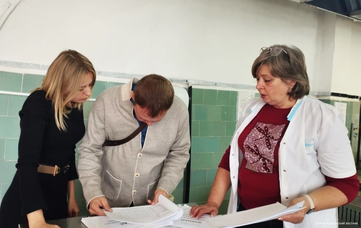 Заместитель Секретаря Карсунского местного отделения Татьяна Лутина, депутат "Единой России" Игорь Львов, член регионального Совета первичек Оксана Саттарова, а также представители администрации, Управления образования изучили состав и качество блюд.
