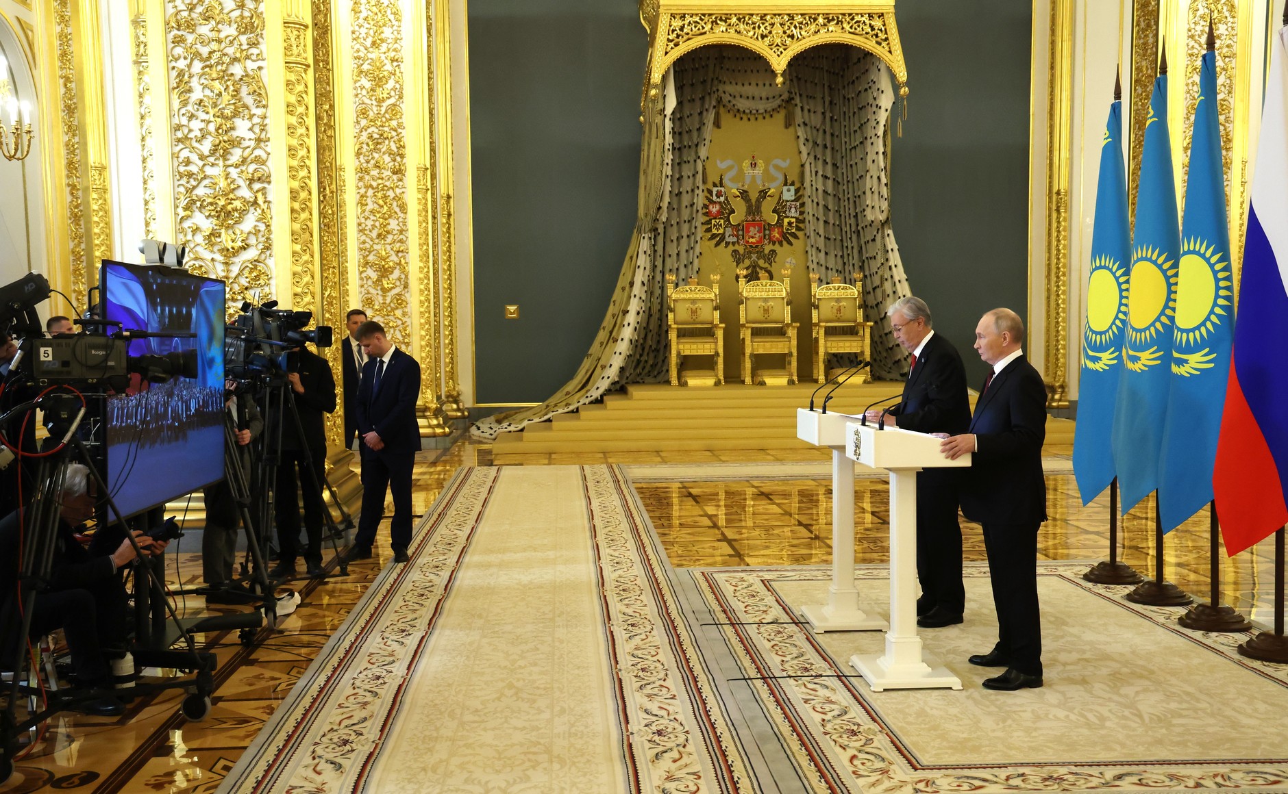 По завершении двухдневных переговоров в Кремле Президент России Владимир Путин и Президент Казахстана Касым-Жомарт Токаев сделали заявления для СМИ.