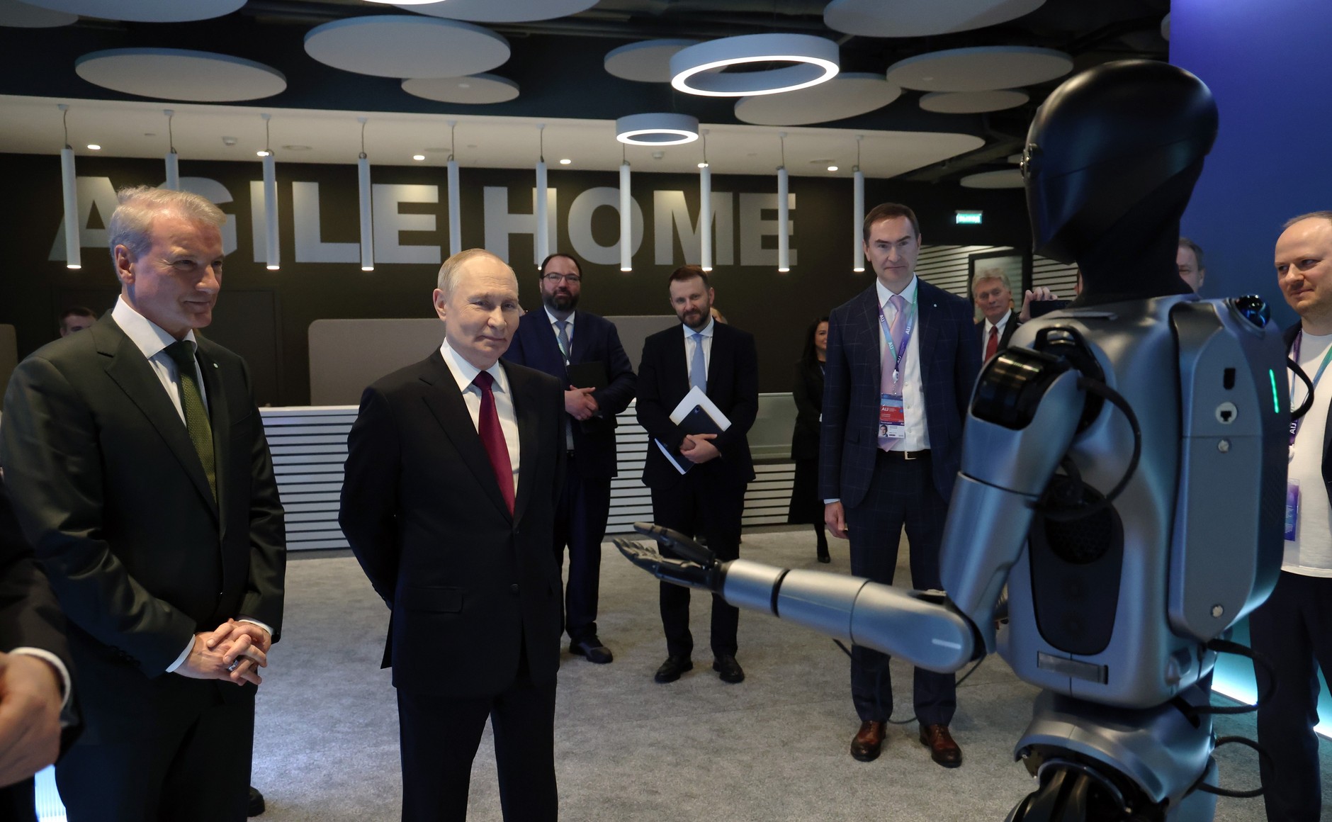 Перед началом пленарного заседания Владимир Путин осмотрел выставку, на которой ознакомился с достижениями российских компаний в сфере искусственного интеллекта. Президенту продемонстрировали, в частности, первого отечественного антропоморфного робота, разработанного «Сбером», линейку интеллектуальных помощников на базе большой языковой модели «ГигаЧат», модель генеративного ИИ – Алису AI от компании «Яндекс».
