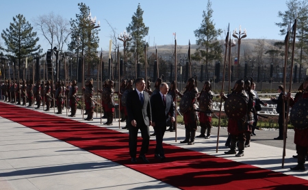 В правительственном комплексе «Ынтымак Ордо» прошли церемония официальной встречи Владимира Путина Президентом Киргизской Республики Садыром Жапаровым и российско-киргизские переговоры.