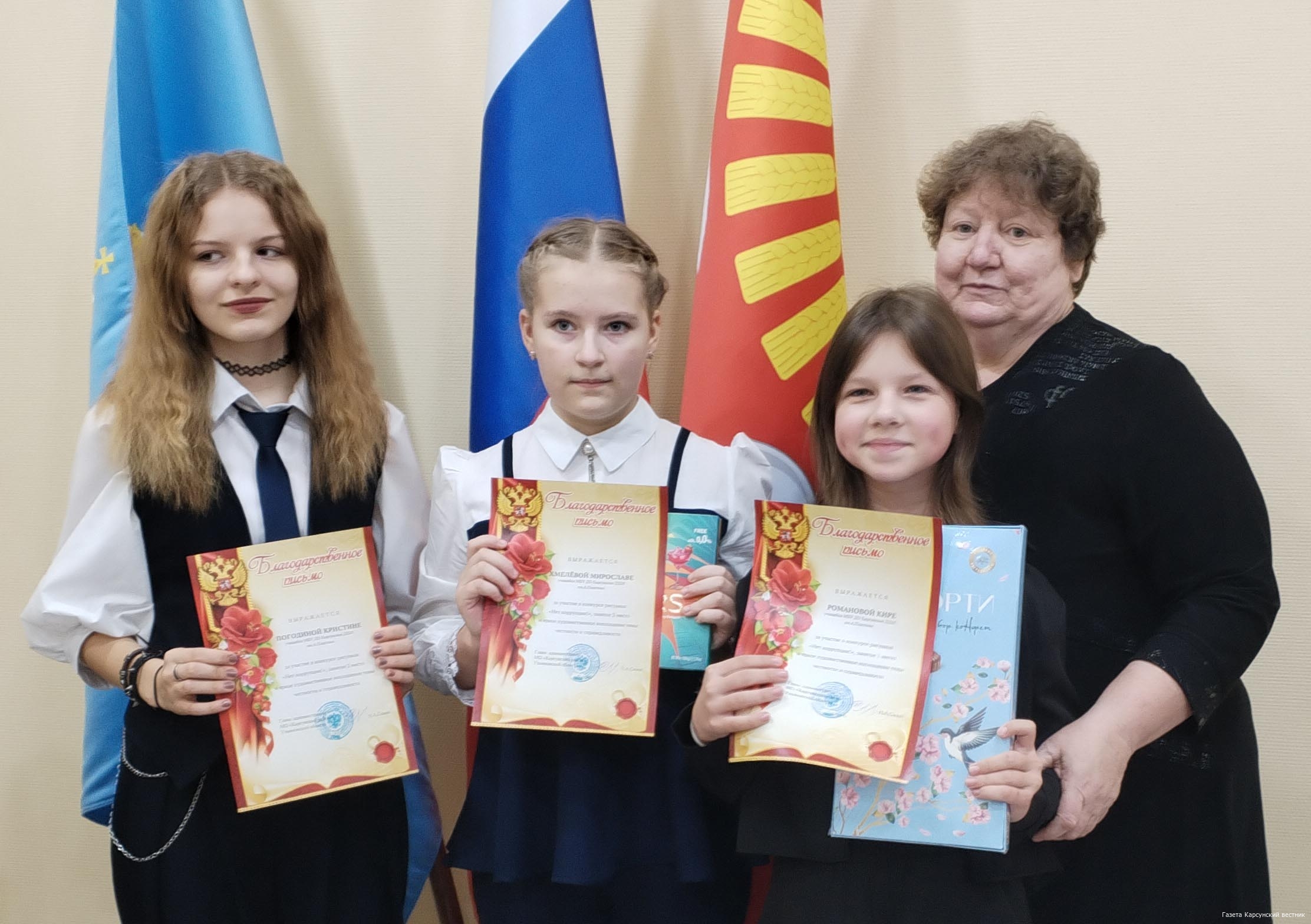 В начале заседания заместитель председателя комиссии Виталий Казаков и руководитель аппарата Валентина Герасимова объявили итоги конкурса «Нет коррупции!», проведённого в рамках пятнадцатой региональной недели антикоррупционных инициатив в Ульяновской области. Особое внимание было уделено подрастающему поколению, ведь именно им предстоит строить будущее, свободное от коррупции. Победителями стали учащиеся Карсунской ДШИ им. Пластова: Хмелёва Мирослава (3 место), Погодина Кристина (2 место) и Романова Кира (1 место). Юные художницы получили благодарственные письма главы администрации МО «Карсунский район» и сладкие подарки, что стало заслуженным признанием их творческого вклада в формирование антикоррупционного сознания.