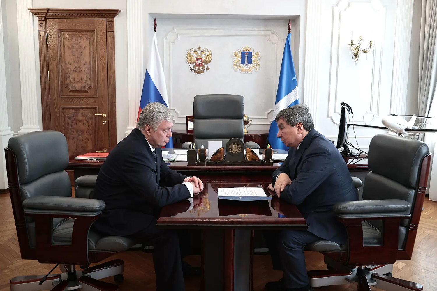 Планы работ по обновлению дорожной сети региона обсудили Губернатор Алексей Русских и начальник Федерального управления автомобильных дорог Волго-Вятского региона Федерального дорожного агентства Илдар Мингазов на встрече в Доме Правительства 14 января.