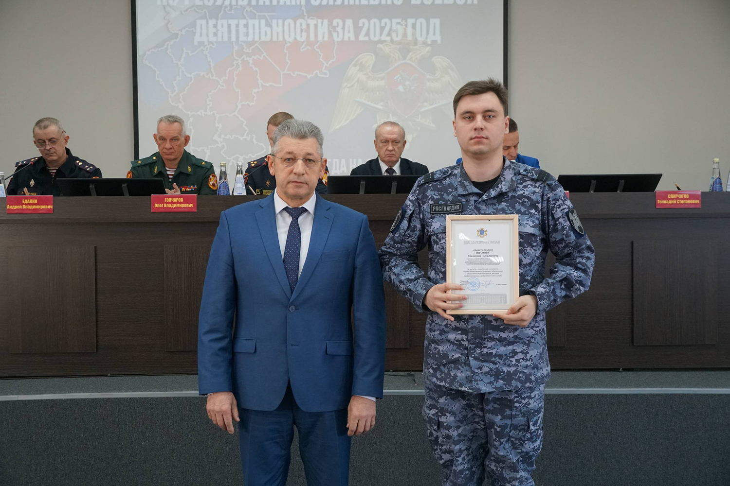 «Управление Росгвардии по Ульяновской области остается одним из самых боеспособных и результативных ведомств. Ежедневно сотрудники Управления показывают высокий уровень профессионализма. Отдельно хотелось бы отметить участие вас и ваших товарищей в специальной военной операции. Сотрудники Росгвардии в первых рядах отправились в зону боевых действий, где героически защищают Родину. Но и здесь, в тылу, вы несёте на себе огромный груз ответственности — каждый день вы обеспечиваете безопасность населения, боретесь с терроризмом, экстремизмом и организованной преступностью, поддерживаете безопасный контроль за оружием, охраняете стратегически важные объекты, защищаете общественный порядок. Спасибо вам за ваш труд и преданность делу!» — сказал Геннадий Спирчагов.