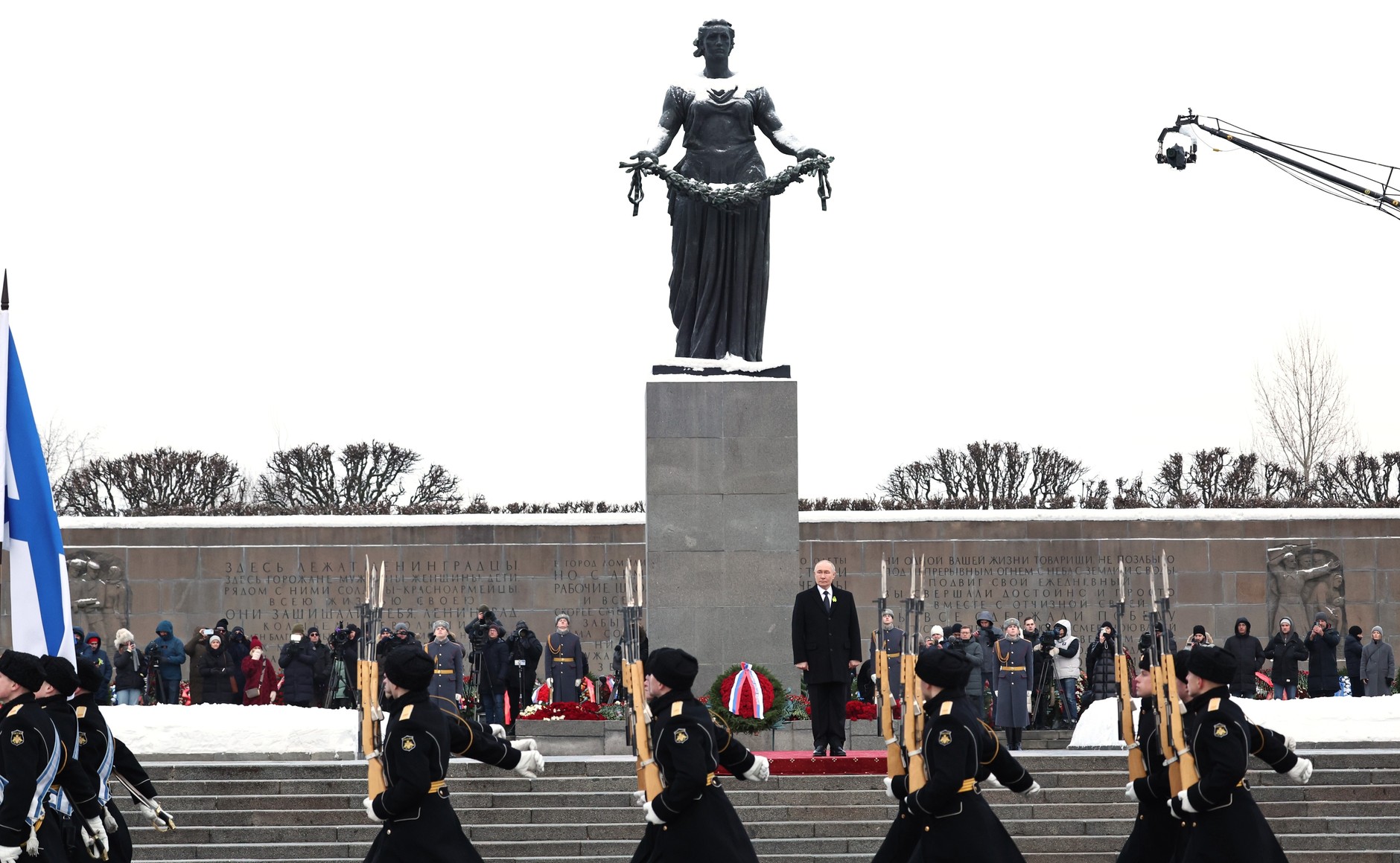 Владимир Путин приехал также на Пискарёвское мемориальное кладбище в Санкт-Петербурге. Глава государства возложил венок к монументу «Мать-Родина», почтив память погибших ленинградцев и защитников города.