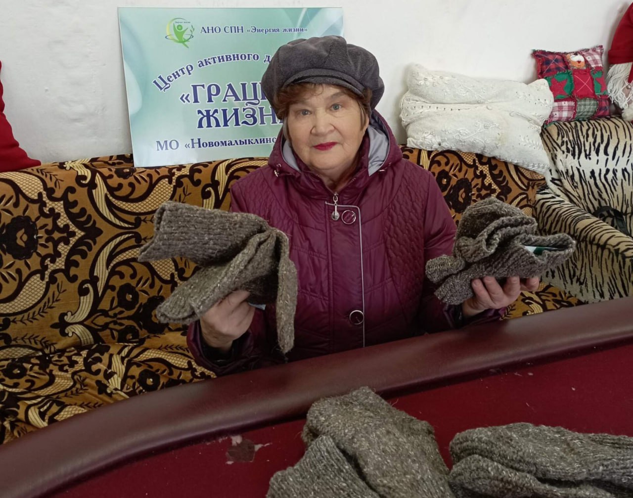 Активно проводит работу в данном направлении и Центр активного долголетия «Грация жизни» в селе Новочеремшанск. По словам руководителя ЦАДа Галины Васильевны Слесаревой, самая активная участница Фаина Хабибулловна Сатдарова, которая в этом году отметит 80-летний юбилей, вяжет для бойцов теплые носки. Она навязала их столько, сколько не каждым молодым рукам под силу.
