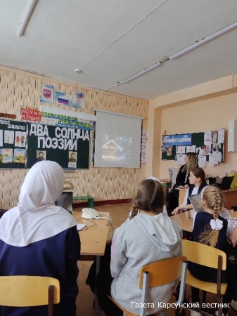 Учащиеся Нагаевской и Большепоселковской школ приняли участие во внеклассном мероприятии «Два солнца поэзии», на котором сравнивали жизнь и творчество двух великих поэтов - Александра Пушкина и Габдуллы Тукая. Учитель начальных классов Рушания Байтирякова рассказала о том, как много общего между великим русским поэтом Пушкиным, который совершил настоящую революцию в русской поэзии, и символом татарской культуры, основоположником современного татарского литературного языка Тукаем. Они, как два солнца, освещают всю мировую литературу. Участники мероприятия вспомнили биографии поэтов, читали их стихи, посмотрели мультфильм по мотивам произведения Г. Тукая.