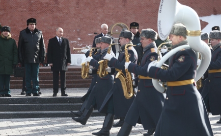 Президент почтил память погибших воинов минутой молчания. Прозвучал Государственный гимн Российской Федерации.