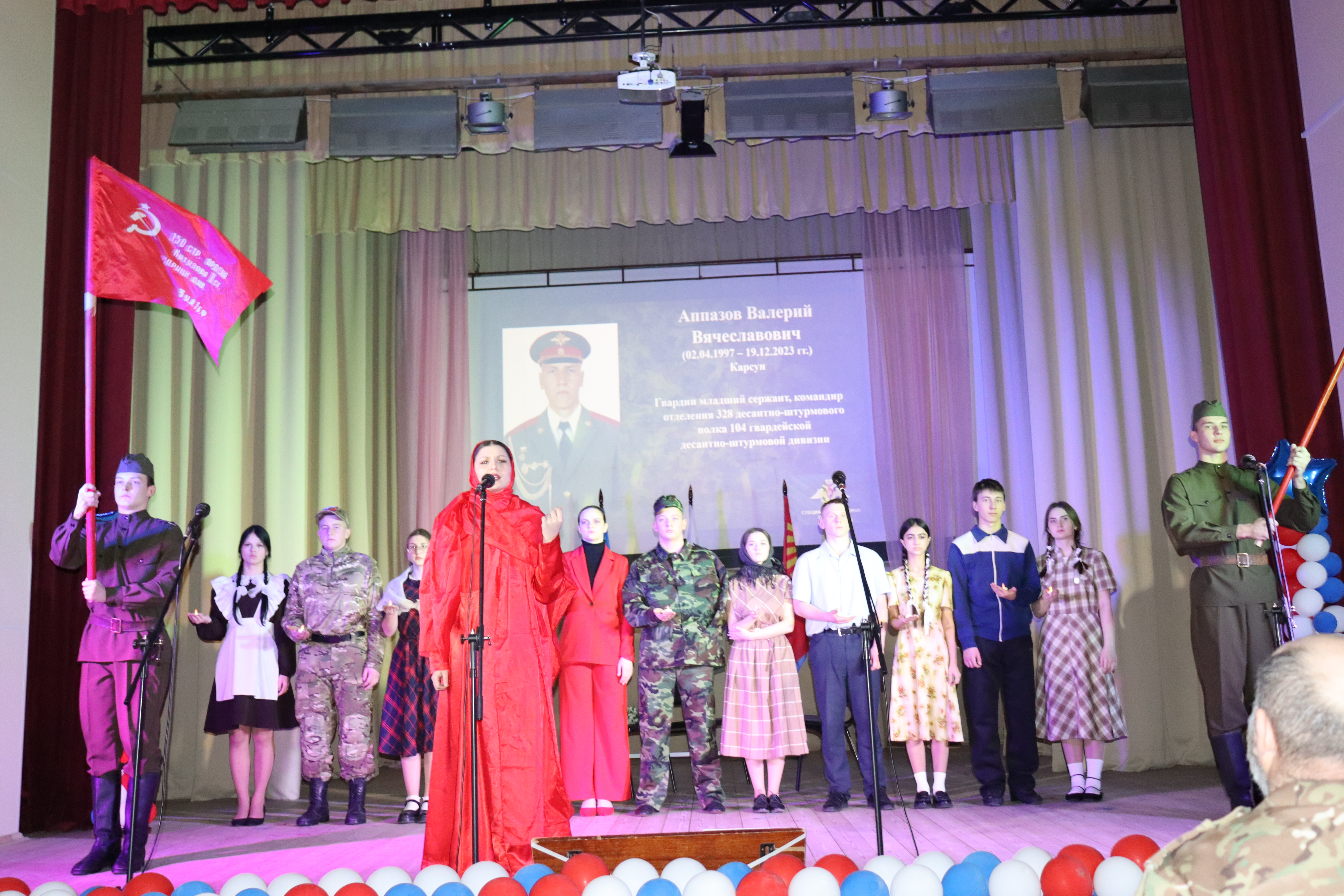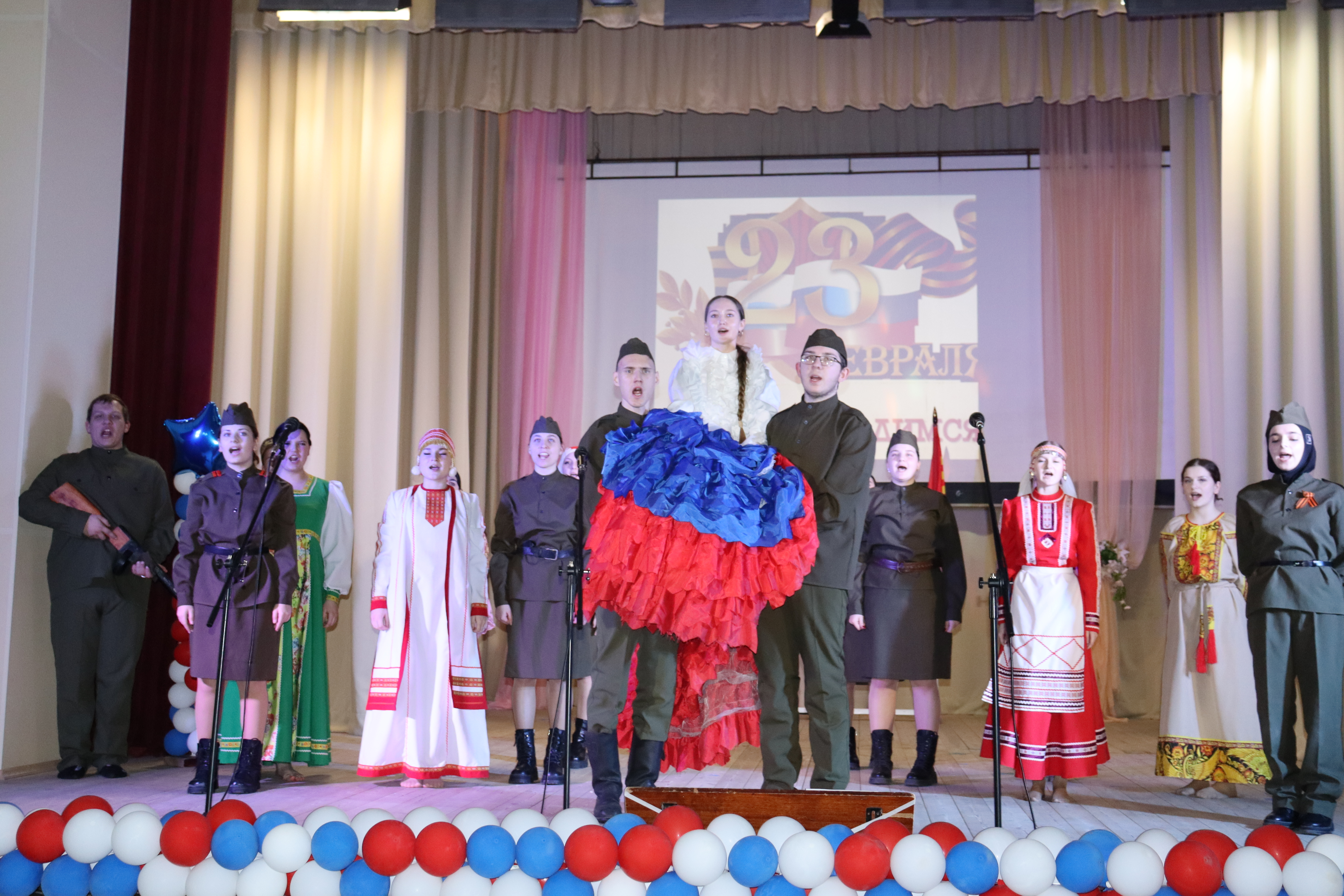 Праздничный концерт, в котором приняли участие и взрослые, и дети стал признанием в любви нашим защитникам. Зрители услышали пронзительные стихи и песни о героях и родине в исполнении учеников школ и работников Дома культуры. Под звуки вальса, грациозно, плавно скользя по сцене, кружились кадеты, а хореографический ансамбль «Вдохновение» блестяще исполнил военный танец. Студенты медицинского и технологического техникумов посвятили свои выступления теме единства: объединению народов в борьбе с врагом и сплочению разных поколений в великий народ.