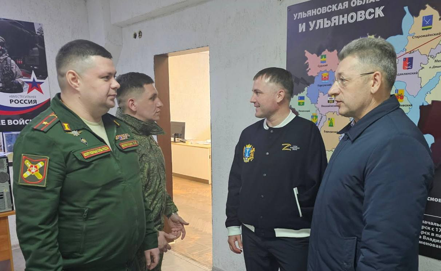 В рамках визита также состоялось совещание, в котором приняли участие военный комиссар Ульяновской области Ринат Аминов и сотрудники отборочного пункта. В ходе конструктивного диалога обсуждались актуальные вопросы комплектования, а также меры поддержки военнослужащих и их семей. Рассмотрены предложения по улучшению взаимодействия между гражданскими структурами и военными, что позволит более эффективно решать возникающие задачи, а также создать атмосферу доверия и поддержки для тех, кто уже принял решение о службе по контракту.