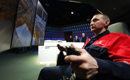 Перед началом церемонии Президент заслушал доклад генерального директора Национального центра «Россия» Натальи Виртуозовой о результатах деятельности выставочного комплекса и его филиалов. Кроме того, глава государства осмотрел макет нового комплекса в Москве. Пояснения давал мэр города Сергей Собянин.