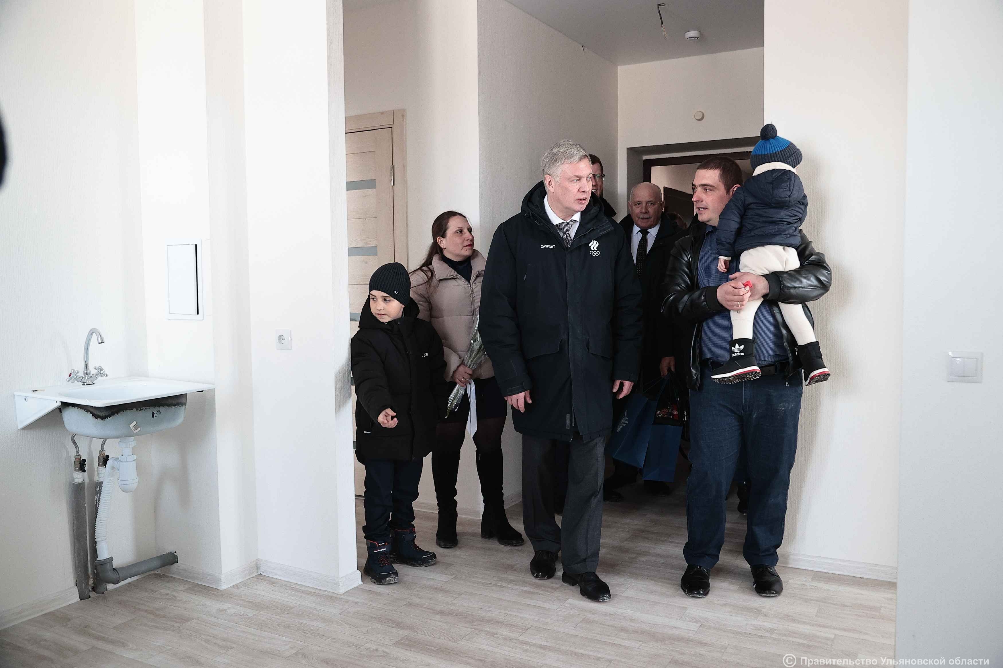Губернатор поздравил новосёлов: «Сегодня в этот прекрасный весенний день мы собрались по очень хорошему поводу – ключи от нового жилья получают семь семей. Жильём по договору найма обеспечили 20 востребованных для района специалистов. Реализуем жилищную программу для сельчан благодаря поддержке Минсельхоза России. Среди новосёлов семья механизатора Андрея Касеева. Вместе с супругой Мариной, сыновьями Данилой и Павлом начали обживаться на новом месте. Прошлым летом встречался с семьёй на стройке, а сегодня посмотрел их четырёхкомнатную квартиру. Получатели ключей смогут стать полноценными собственниками комфортного жилья через пять лет за 10% от стоимости квартиры, а через десять лет — всего за 1%. Это стало возможным благодаря государственной программе «Комплексное развитие сельских территорий». Ранее такие дома строились только в Новоспасском районе, а в 2025 году проекты были реализованы также в Карсунском и Павловском районах. Хочу пожелать тем счастливым семьям, которые получили сегодня ключи, всего самого доброго, чтоб в новых квартирах ваши семьи были счастливы».