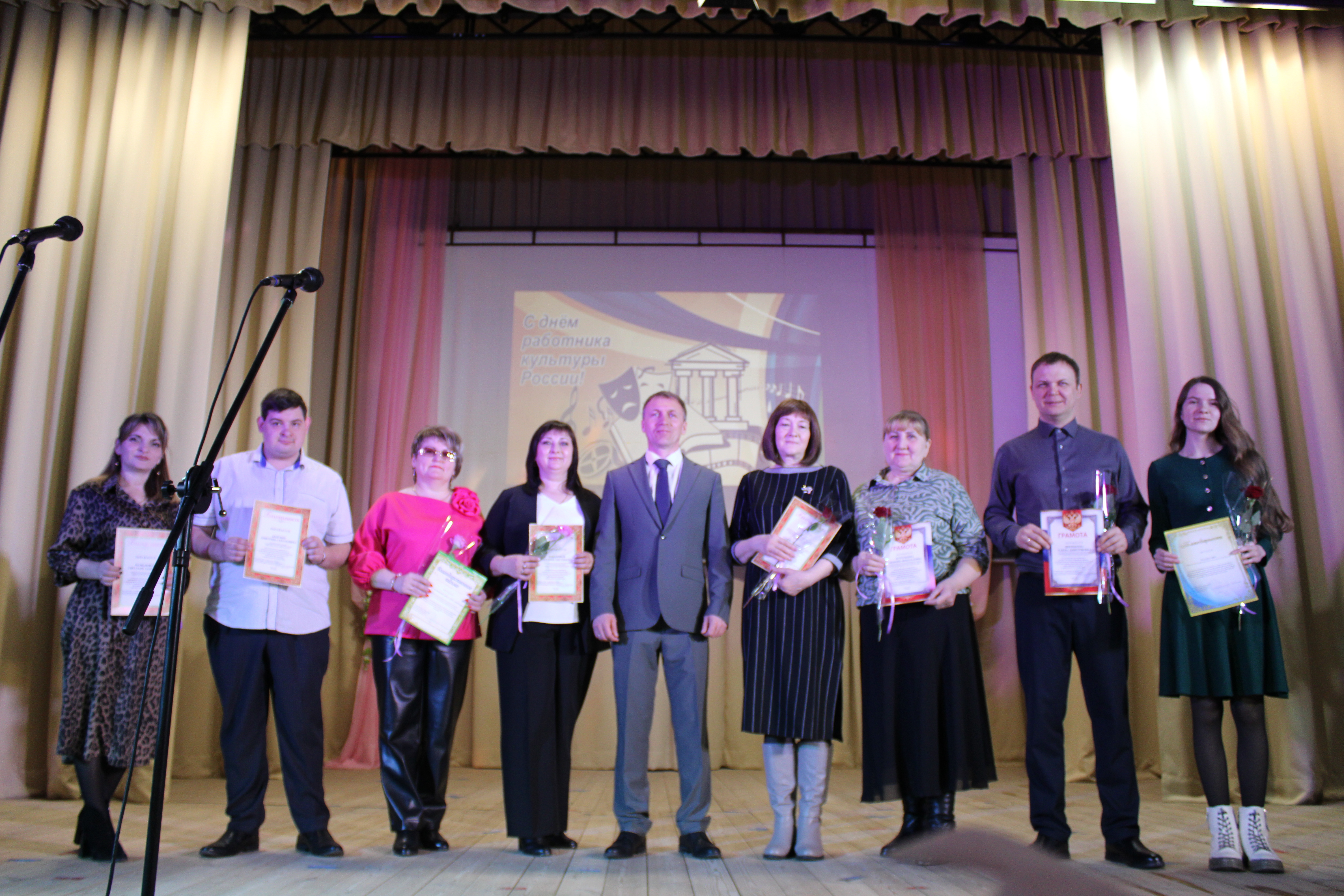 По поручению главы администрации района и депутатского корпуса виновников торжества поздравил первый заместитель главы администрации района Виктор Лисин, поблагодаривший их за непростую работу: «Вы являетесь огоньками искусства и культуры в наших сёлах, в самое трудное время остаётесь преданными своему делу, людям, односельчанам. Вы не сбежали, не ушли за большими заработками, вы учите людей видеть прекрасное, не черстветь душой. Спасибо вам!» За преданность профессии он наградил работников культуры района благодарственными письмами и почётными грамотами главы администрации муниципального образования.