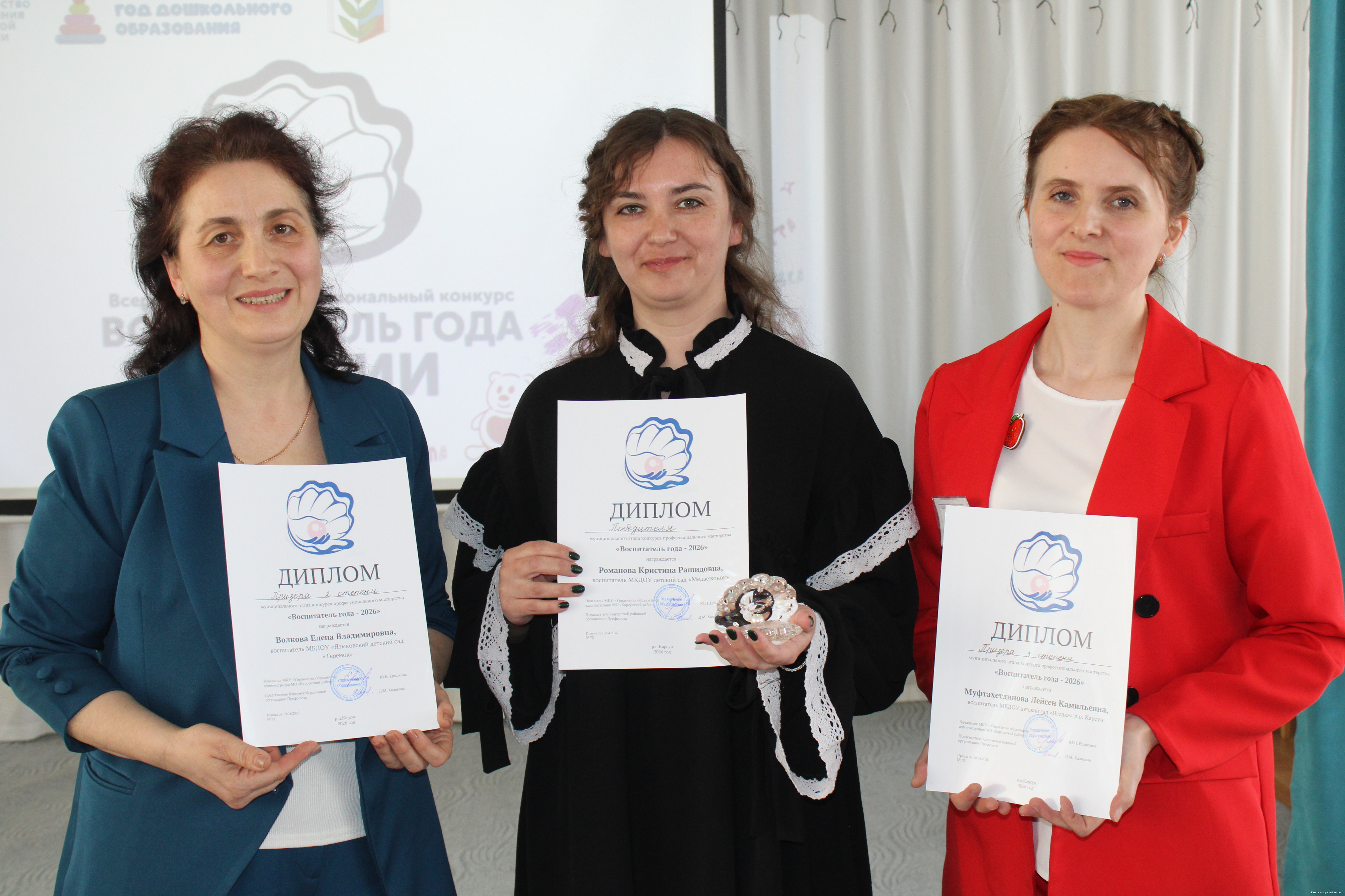 По итогам крнкурса переходящий приз-символ и звание лучшего воспитателя района было присуждено Кристине Романовой. Второе место заняла Елена Волкова, третье - у Лейсен Муфтахетдиновой.