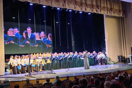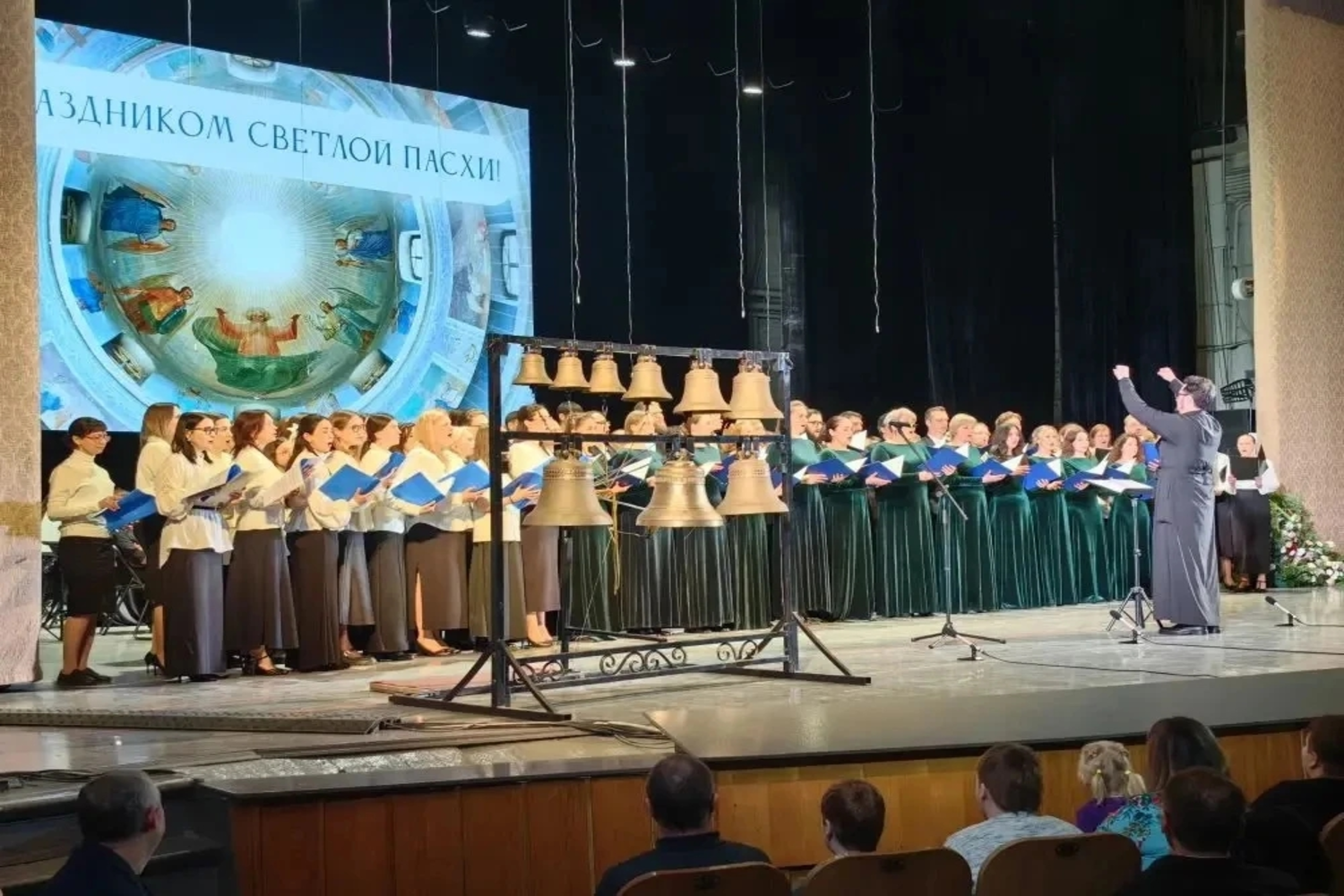 Праздничный концерт открыл Сводный хор храмов Симбирской епархии и мастер колокольного звона старший звонарь Спасо-Вознесенского кафедрального собора Ульяновска, руководитель школы звонарского искусства при Симбирской епархии Глеб Кудасов.